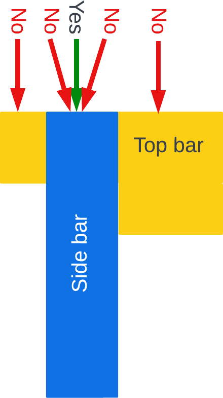 Step 4 - Secure the top bar to the side bars![]() Nail alignment Side view The steps are: