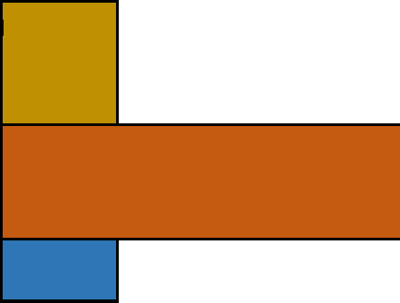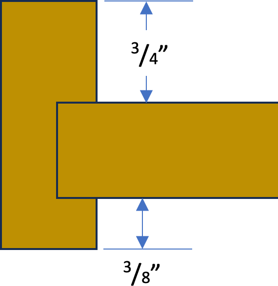 Instead, consider making the bottom board using 3 sets of pieces. The horizontal piece (dark orange) should be the full width and length of the bottom board. (Also, using this approach, determining this board's size is quite easy.) The upper pieces (brown) should be ¾" high X ¾" wide. There will be 3 of these (two sides and the back). These pieces should be glued and nailed to the horizontal piece. The lower pieces (blue) should be ⅜" high X ¾" wide. There will be 3 of these (two sides and the back). These pieces should be glued and nailed to the horizontal piece. |