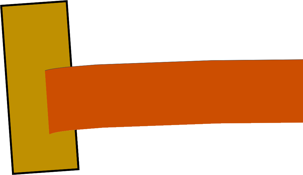 The horizontal board may cup when it ages, particularly if it was not dried well. If it is attached to the side pieces using a dado, it can bow the sides out as shown in the picture to the left. That picture is an exaggerated view, but that was done to show the idea. Thusly, this approach is also not recommended. |