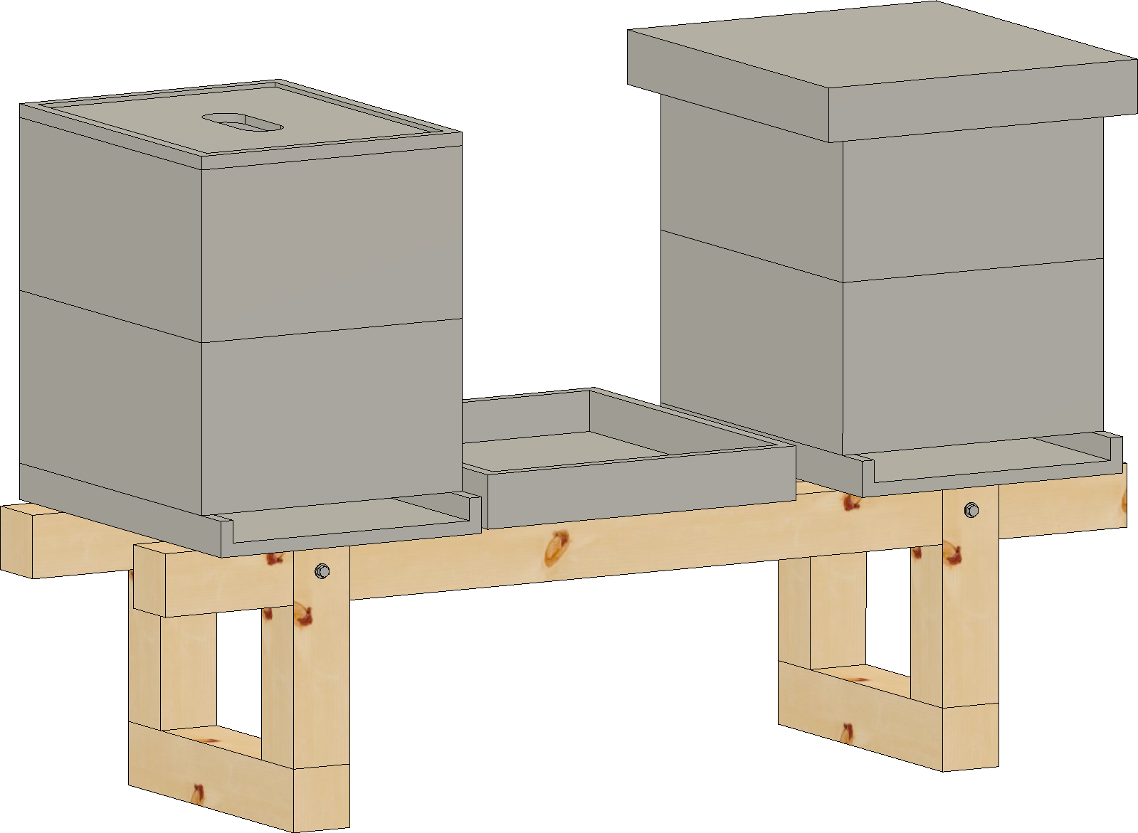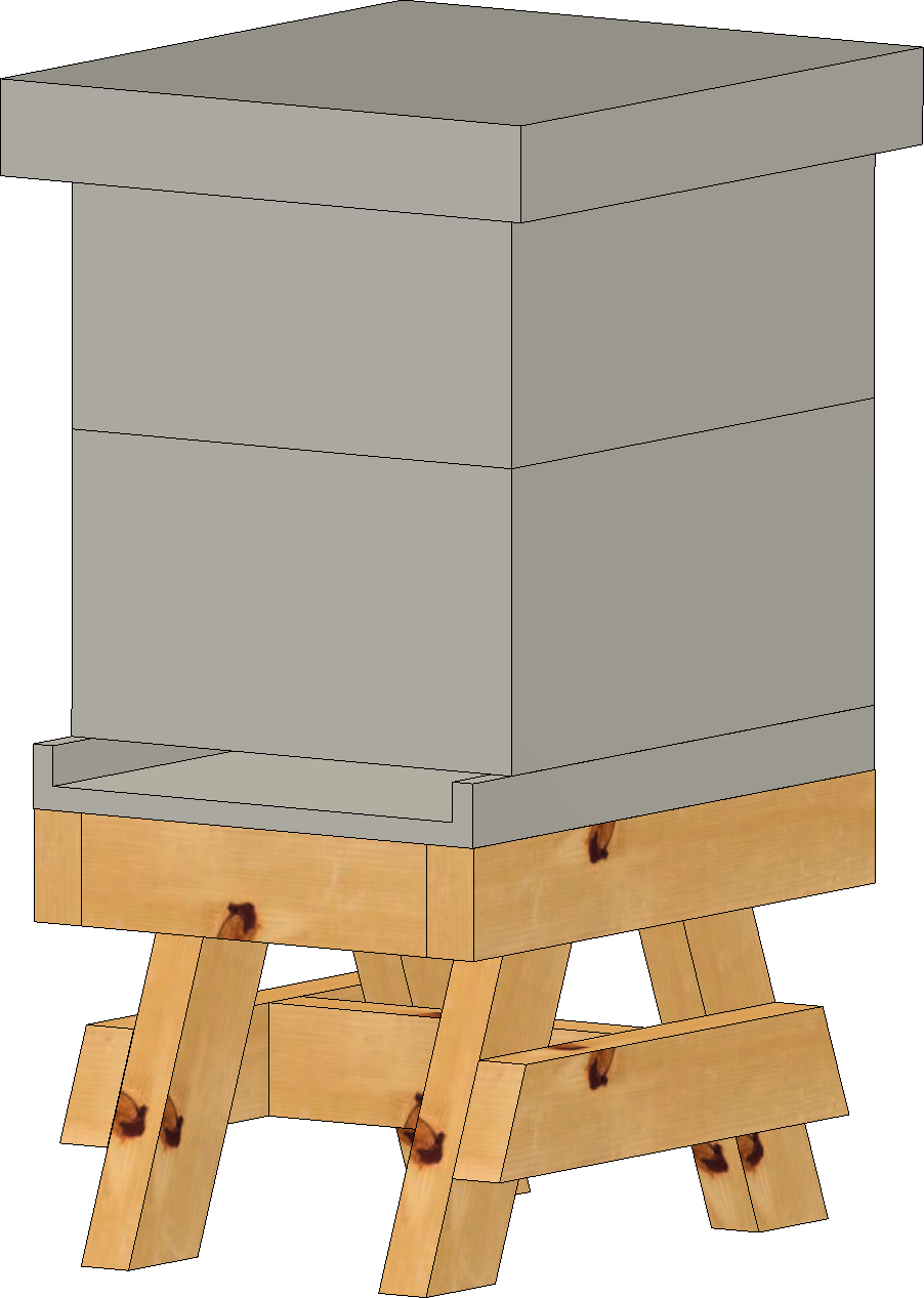 The hive stand is designed to get the colony's hive boxes off the ground. This helps with preventing wood rot, and also helps with ventilation for the hive.