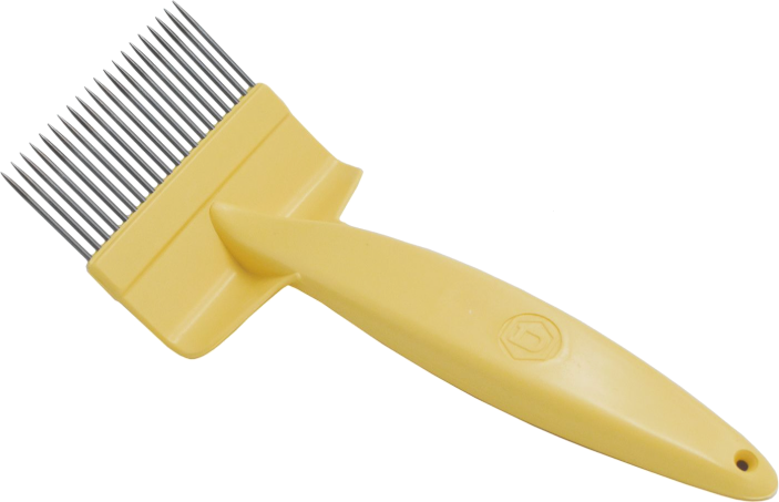 Cappings scratcher (also known as an uncapping fork) This tool works, and is a very low cost tool for this purpose. Just be sure to not dig too deep into the cells. |