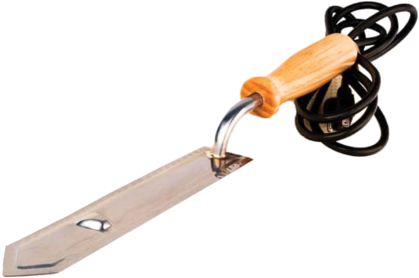 Uncapping Knife This tool works well, but is a bit more expensive than the other tools. The beekeepers who use it best have figured out how to manage the knife's heat, even unplugging it if the tool is not needed for a short time. There are heated and unheated versions of these. I have not used either so I cannot speak to the advantages or disadvantages. |